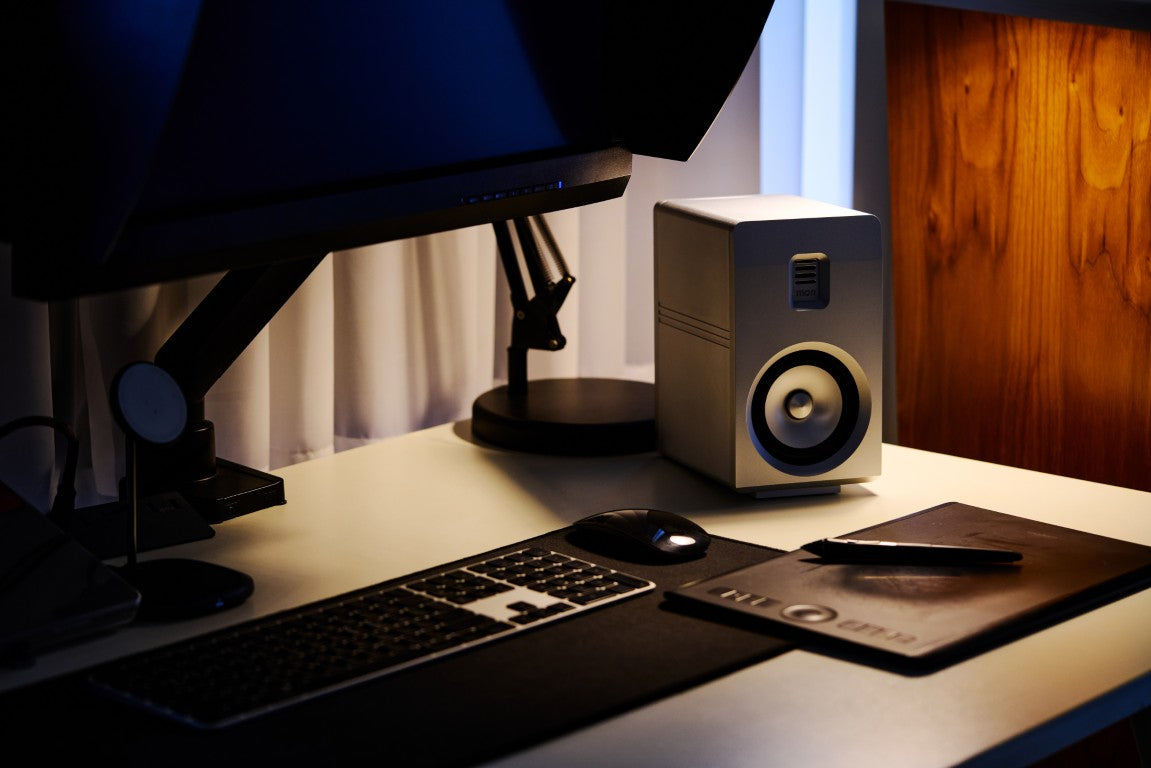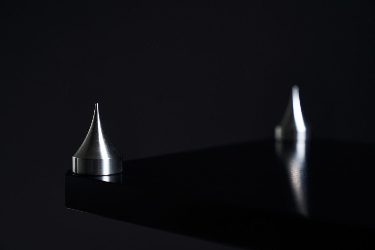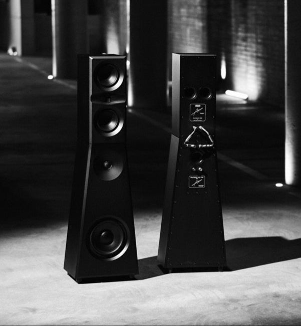 The aluminum cabinet remains monolithic and sculptural, while the grille introduces tension and contrast. Together, they create a visual language that balances engineering rigor with artistic restraint.